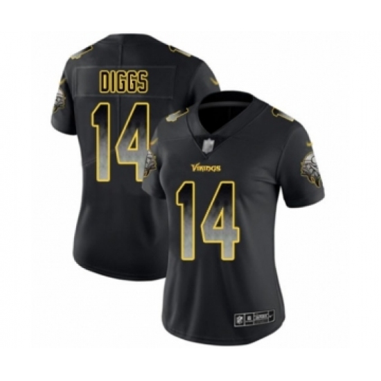 >Women's Minnesota Vikings #14 Stefon Diggs Limited Black Smoke Fashion Football Jersey