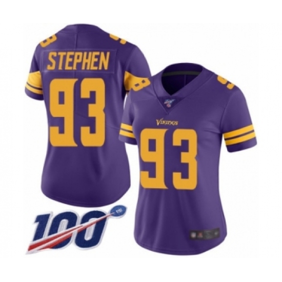 >Women's Minnesota Vikings #93 Shamar Stephen Limited Purple Rush Vapor Untouchable 100th Season Football Jersey