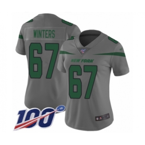 >Women's New York Jets #67 Brian Winters Limited Gray Inverted Legend 100th Season Football Jersey