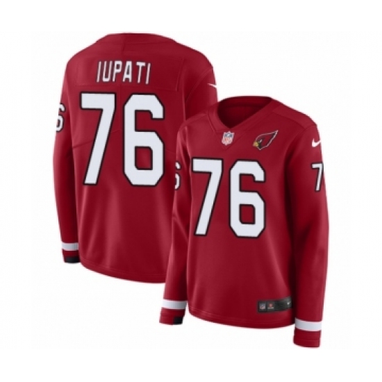 >Women's Nike Arizona Cardinals #76 Mike Iupati Limited Red Therma Long Sleeve NFL Jersey