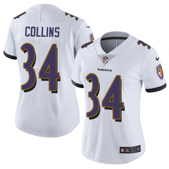Women's Nike Baltimore Ravens #34 Alex Collins White Vapor Untouchable Limited Player NFL Jersey