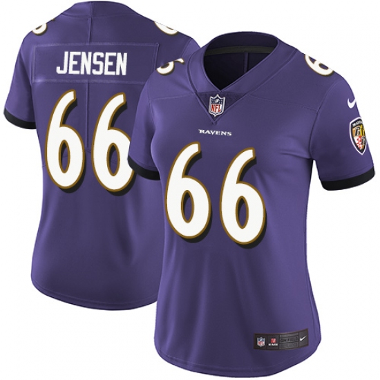 Home>NFL>Baltimore Ravens>Ryan Jensen>Women's Nike Baltimore Ravens #66 Ryan Jensen Purple Team Color Vapor Untouchable Limited Player NFL Jersey