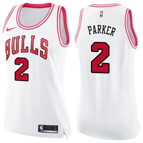 Women's Nike Chicago Bulls #2 Jabari Parker Swingman White Pink Fashion NBA Jersey