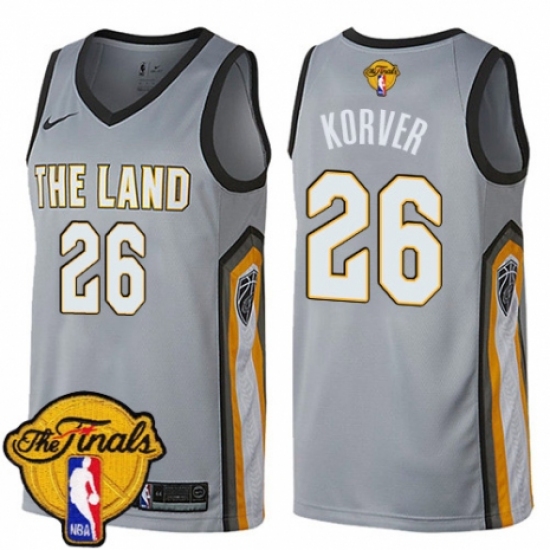 >Women's Nike Cleveland Cavaliers #26 Kyle Korver Swingman Gray 2018 NBA Finals Bound NBA Jersey - City Edition
