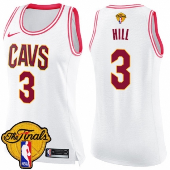 Women's Nike Cleveland Cavaliers #3 George Hill Swingman White/Pink Fashion 2018 NBA Finals Bound NBA Jersey