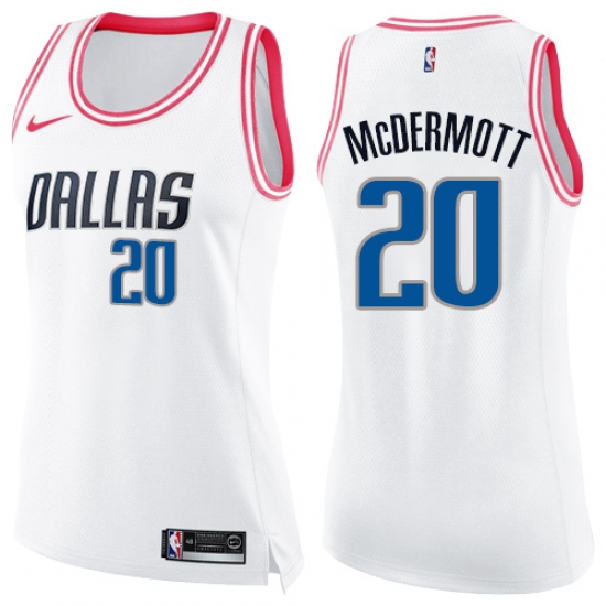 Home>NBA>Dallas Mavericks>Doug McDermott>Women's Nike Dallas Mavericks #20 Doug McDermott Swingman White/Pink Fashion NBA Jersey