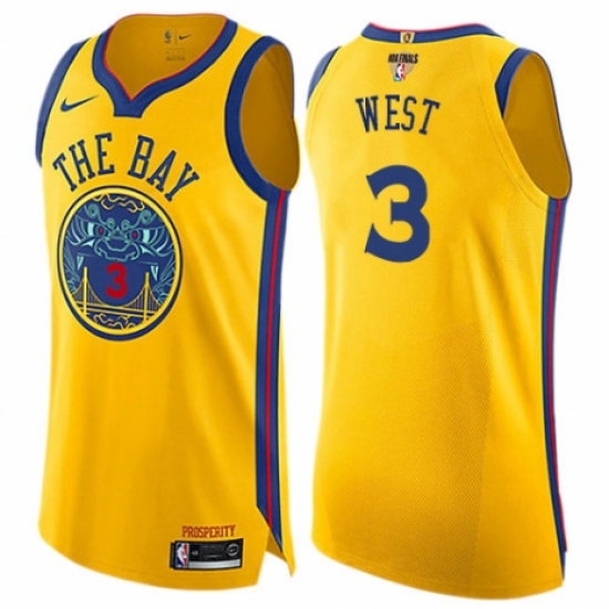 >Women's Nike Golden State Warriors #3 David West Swingman Gold 2018 NBA Finals Bound NBA Jersey - City Edition