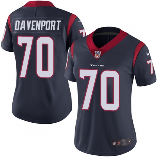 Home>NFL>Houston Texans>Julien Davenport>Women's Nike Houston Texans #70 Julien Davenport Limited Navy Blue Team Color Vapor Untouchable NFL Jersey