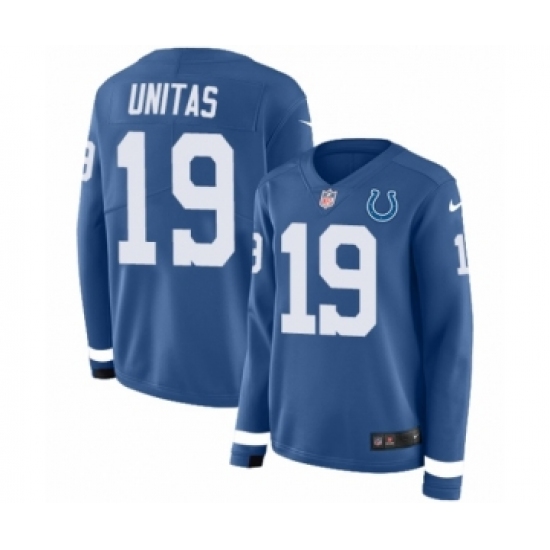 >Women's Nike Indianapolis Colts #19 Johnny Unitas Limited Blue Therma Long Sleeve NFL Jersey