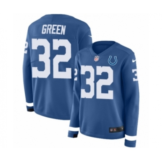 >Women's Nike Indianapolis Colts #32 T.J. Green Limited Blue Therma Long Sleeve NFL Jersey