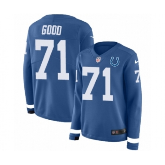 >Women's Nike Indianapolis Colts #71 Denzelle Good Limited Blue Therma Long Sleeve NFL Jersey
