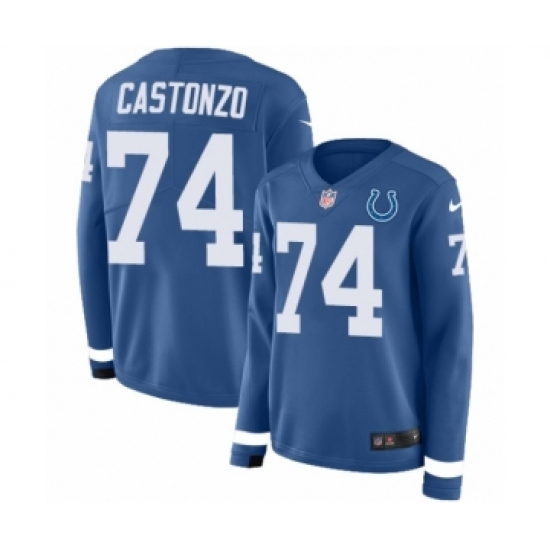 Women's Nike Indianapolis Colts #74 Anthony Castonzo Limited Blue Therma Long Sleeve NFL Jersey