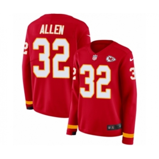Women's Nike Kansas City Chiefs #32 Marcus Allen Limited Red Therma Long Sleeve NFL Jersey