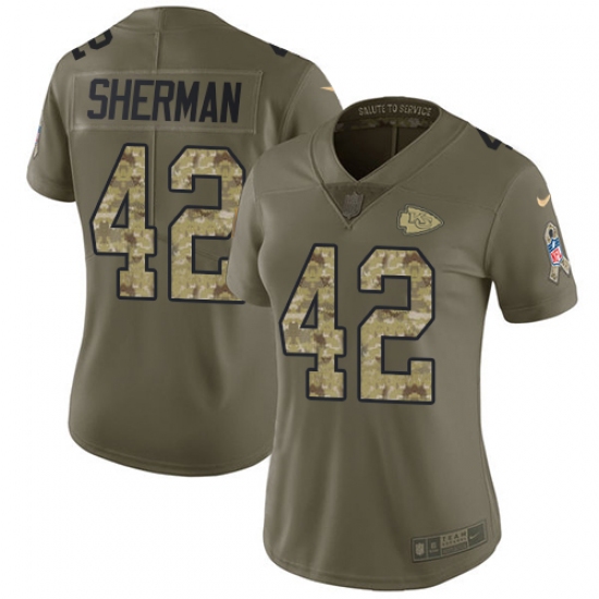 Home>NFL>Kansas City Chiefs>Anthony Sherman>Women's Nike Kansas City Chiefs #42 Anthony Sherman Limited Olive/Camo 2017 Salute to Service NFL Jersey