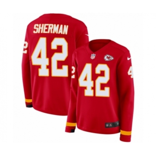 >Women's Nike Kansas City Chiefs #42 Anthony Sherman Limited Red Therma Long Sleeve NFL Jersey
