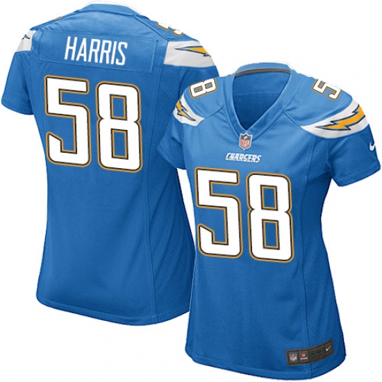 Home>NFL>Los Angeles Chargers>Nigel Harris>Women's Nike Los Angeles Chargers #58 Nigel Harris Game Electric Blue Alternate NFL Jersey