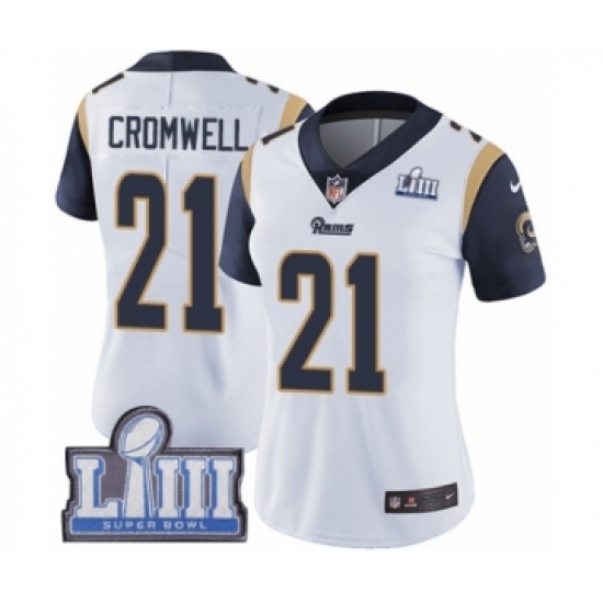 >Women's Nike Los Angeles Rams #21 Nolan Cromwell White Vapor Untouchable Limited Player Super Bowl LIII Bound NFL Jersey