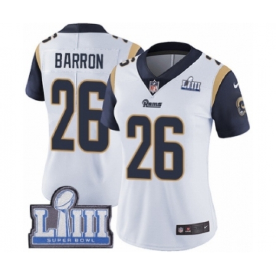 Women's Nike Los Angeles Rams #26 Mark Barron White Vapor Untouchable Limited Player Super Bowl LIII Bound NFL Jersey