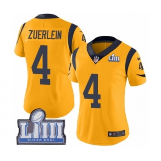 Women's Nike Los Angeles Rams #4 Greg Zuerlein Limited Gold Rush Vapor Untouchable Super Bowl LIII Bound NFL Jersey