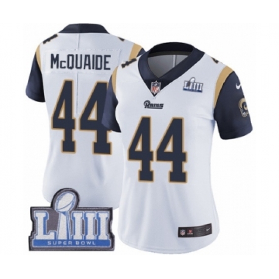 Women's Nike Los Angeles Rams #44 Jacob McQuaide White Vapor Untouchable Limited Player Super Bowl LIII Bound NFL Jersey