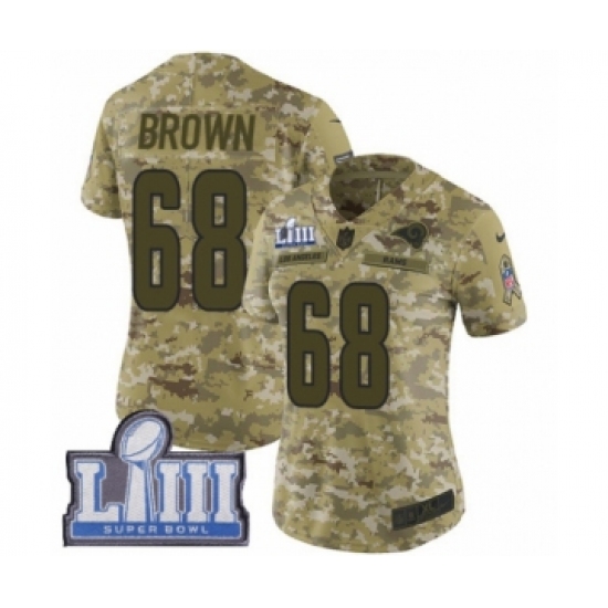 >Women's Nike Los Angeles Rams #68 Jamon Brown Limited Camo 2018 Salute to Service Super Bowl LIII Bound NFL Jersey