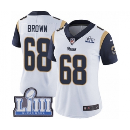 >Women's Nike Los Angeles Rams #68 Jamon Brown White Vapor Untouchable Limited Player Super Bowl LIII Bound NFL Jersey