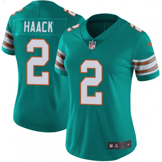 Women's Nike Miami Dolphins #2 Matt Haack Aqua Green Alternate Vapor Untouchable Limited Player NFL Jersey