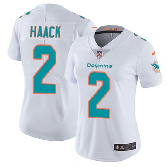 >Women's Nike Miami Dolphins #2 Matt Haack White Vapor Untouchable Limited Player NFL Jersey