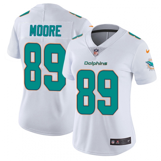 Home>NFL>Miami Dolphins>Nat Moore>Women's Nike Miami Dolphins #89 Nat Moore White Vapor Untouchable Limited Player NFL Jersey