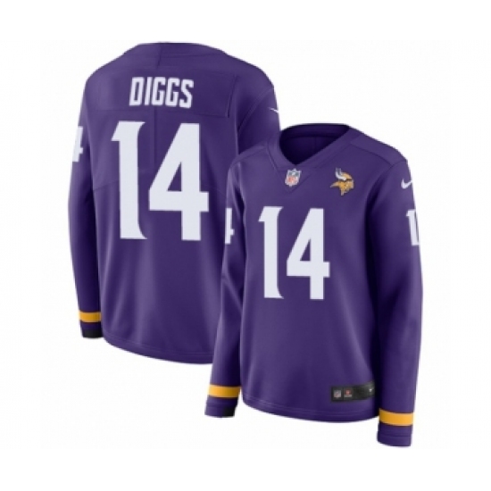 >Women's Nike Minnesota Vikings #14 Stefon Diggs Limited Purple Therma Long Sleeve NFL Jersey