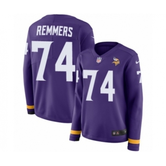 >Women's Nike Minnesota Vikings #74 Mike Remmers Limited Purple Therma Long Sleeve NFL Jersey