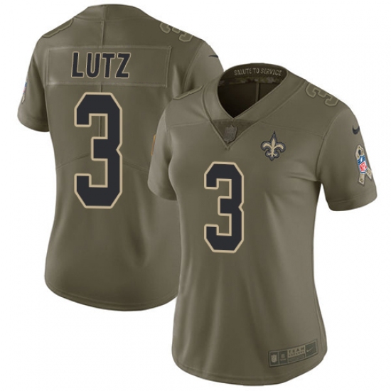 Home>NFL>New Orleans Saints>Will Lutz>Women's Nike New Orleans Saints #3 Will Lutz Limited Olive 2017 Salute to Service NFL Jersey