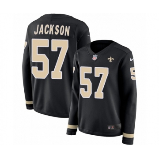 >Women's Nike New Orleans Saints #57 Rickey Jackson Limited Black Therma Long Sleeve NFL Jersey