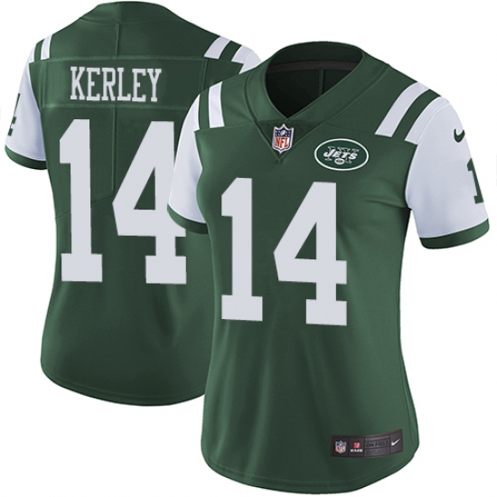 Home>NFL>New York Jets>Jeremy Kerley>Women's Nike New York Jets #14 Jeremy Kerley Green Team Color Vapor Untouchable Limited Player NFL Jersey