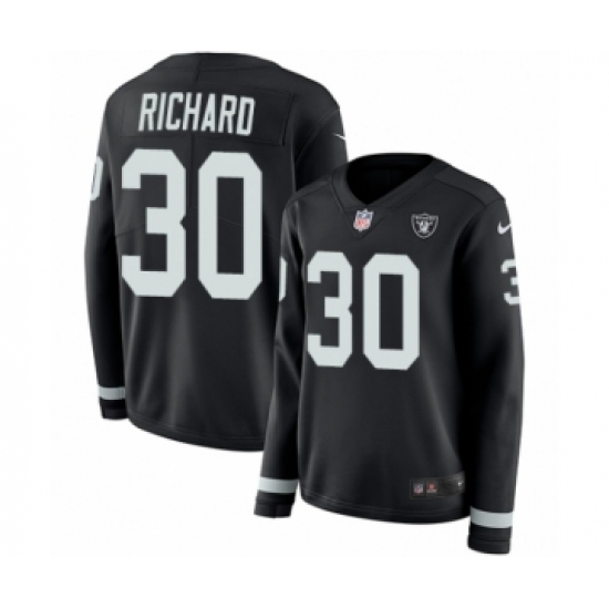 >Women's Nike Oakland Raiders #30 Jalen Richard Limited Black Therma Long Sleeve NFL Jersey