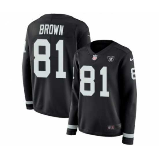 >Women's Nike Oakland Raiders #81 Tim Brown Limited Black Therma Long Sleeve NFL Jersey