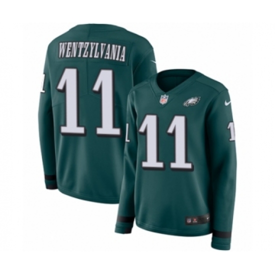 Women's Nike Philadelphia Eagles #11 Carson Wentz Limited Green Therma Long Sleeve Wentzylvania NFL Jersey