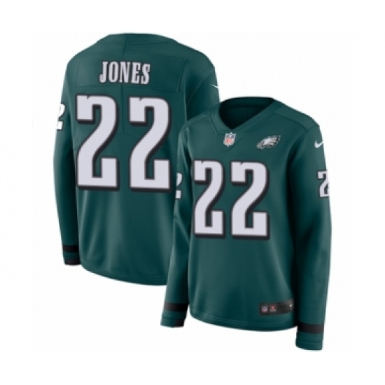 >Women's Nike Philadelphia Eagles #22 Sidney Jones Limited Green Therma Long Sleeve NFL Jersey