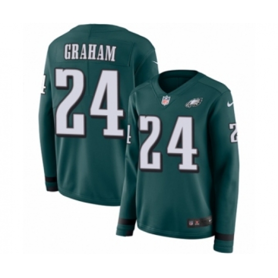 >Women's Nike Philadelphia Eagles #24 Corey Graham Limited Green Therma Long Sleeve NFL Jersey