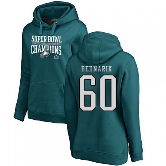 Women's Nike Philadelphia Eagles #60 Chuck Bednarik Green Super Bowl LII Champions Pullover Hoodie