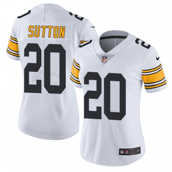 >Women's Nike Pittsburgh Steelers #20 Cameron Sutton White Vapor Untouchable Limited Player NFL Jersey