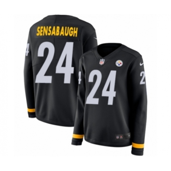 >Women's Nike Pittsburgh Steelers #24 Coty Sensabaugh Limited Black Therma Long Sleeve NFL Jersey