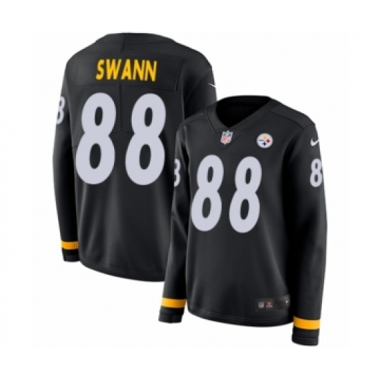 >Women's Nike Pittsburgh Steelers #88 Lynn Swann Limited Black Therma Long Sleeve NFL Jersey