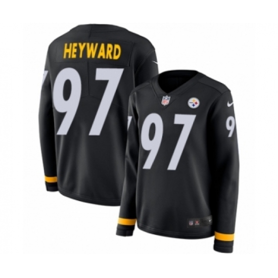 >Women's Nike Pittsburgh Steelers #97 Cameron Heyward Limited Black Therma Long Sleeve NFL Jersey