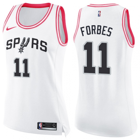 >Women's Nike San Antonio Spurs #11 Bryn Forbes Swingman White Pink Fashion NBA Jersey