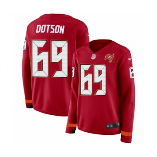 Women's Nike Tampa Bay Buccaneers #69 Demar Dotson Limited Red Therma Long Sleeve NFL Jersey