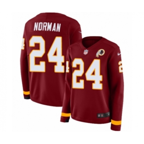 Women's Nike Washington Redskins #24 Josh Norman Limited Burgundy Therma Long Sleeve NFL Jersey