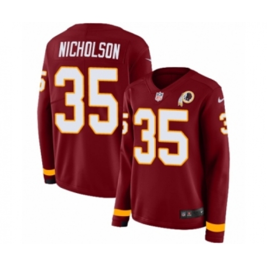 Women's Nike Washington Redskins #35 Montae Nicholson Limited Burgundy Therma Long Sleeve NFL Jersey
