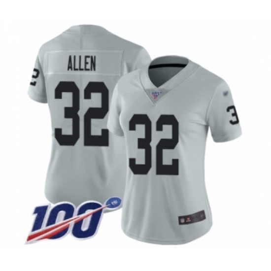 >Women's Oakland Raiders #32 Marcus Allen Limited Silver Inverted Legend 100th Season Football Jersey