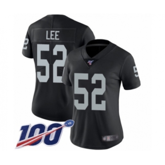 >Women's Oakland Raiders #52 Marquel Lee Black Team Color Vapor Untouchable Limited Player 100th Season Football Jersey